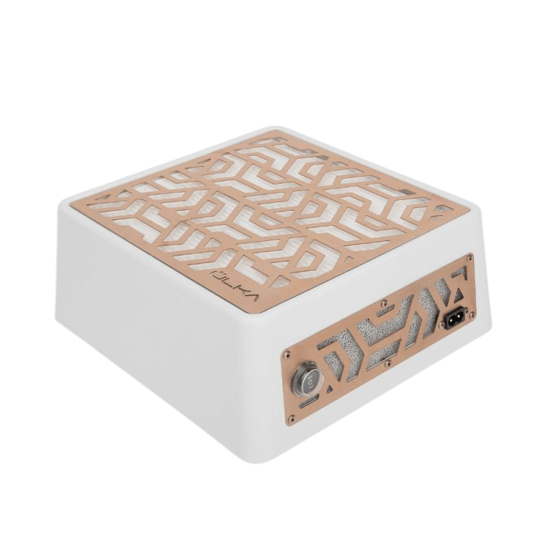 האירי את עמדת העבודה שלך עם ÜLKA Premium, שואב האבק היוקרתי למניקור, הזמין בשלושה צבעים: לבן, שחור או אפור, עם גריל מגנטי בגוון זהב.