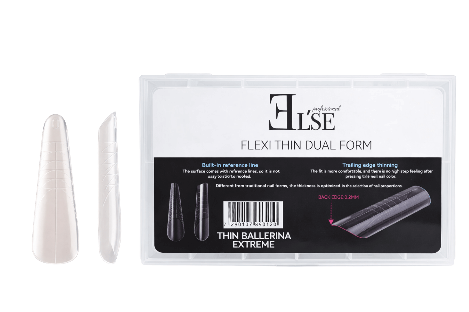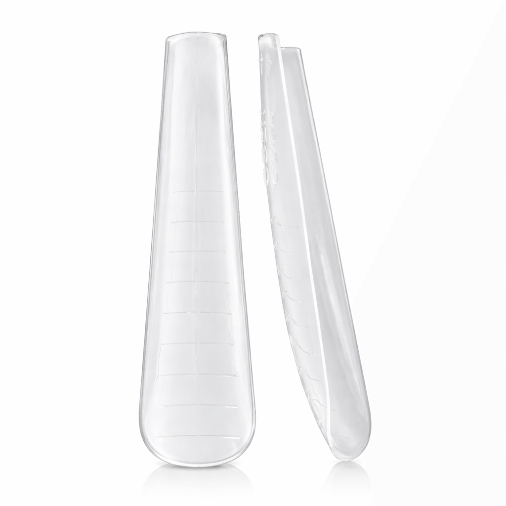 FLEXI THIN DUAL FORM – טיפס הפוך דקיק במיוחד עם סימון מובנה להנחה מדויקת ללא עיוות. מבנה מאוזן המאפשר ייבוש מלא ואחיד של החומר, שליטה גבוהה ודיוק מקסימלי בפרופורציות הציפורן.