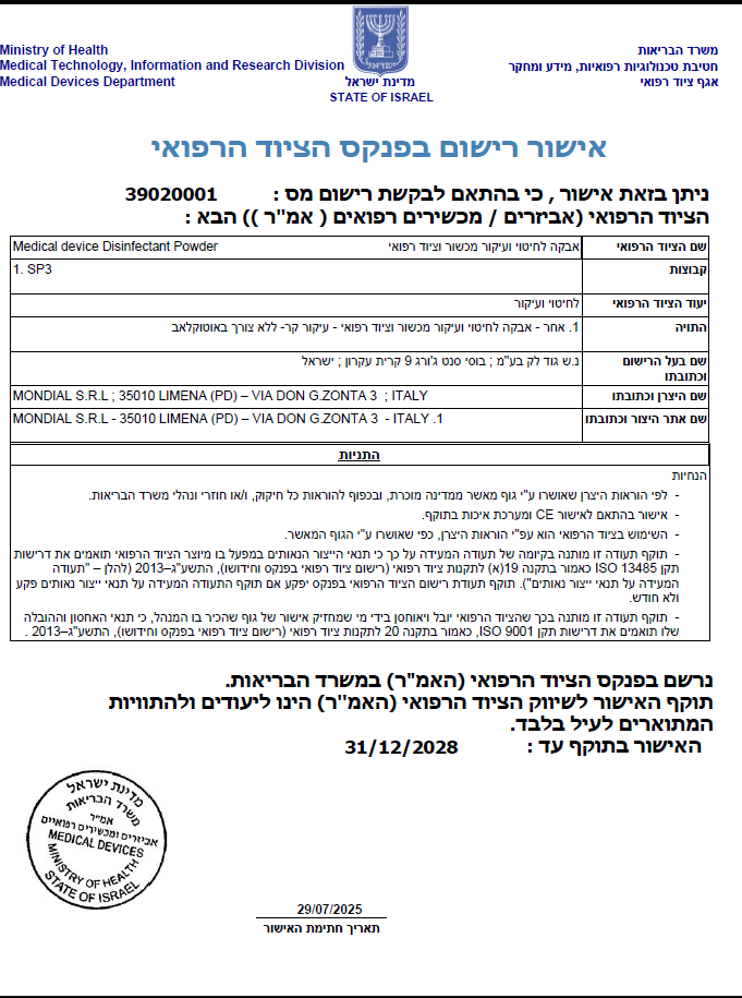 SP3 – אבקת חיטוי ועיקור מקצועית (מאושר אמ"ר)
